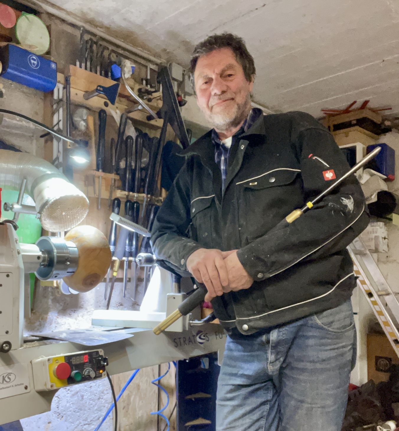 Ein Lehrer hat mich im Werk-Unterricht infiziert. Was für ein geniales Gefühl. Ich brauche nur ein Werkzeug an das drehende Holz zu halten und kann es ohne Kraft formen. Mein erstes Werkstück aus einem Korken war der Schwimmkörper eine Pose, gedrechselt mit einer Bohrmaschine. Und ich spürte in dem Moment, „DAS ist es was ich will“